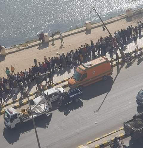 سيارة مسرعة بطريق الكورنيش ببني سويف تنحرف عن مسارها وتتسبب في مقتل شاب وسيدة ، وتنقلب السيارة نتيجة السرعة داخل حديقة الكورنيش