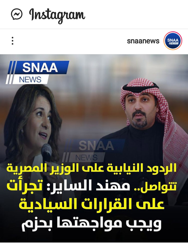 قام موقع “سنا نيوز ” على الانستجرام بنشر بعض الأخبار عن مصر ، ومنها على لسان بعض اعضاء مجلس الامة ، الذين يأخذون معلوماتهم من إشاعات السوشيال ميديا ،