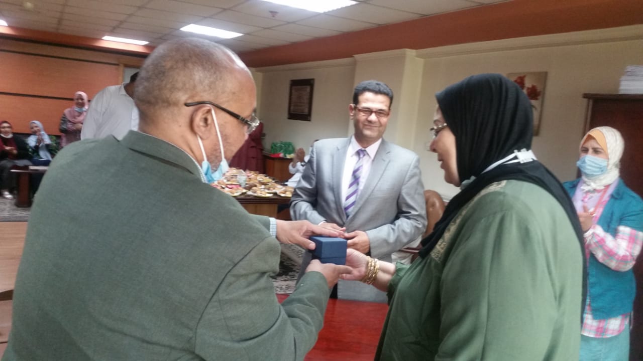 كما قام المحاسب عصام بوليس المشرف العام علي قطاع المكافحة بتقديم هدية تذكارية نيابة عن جميع العاملين بالقطاع تكريما للسيدة عفاف محمد علي حسن بمناسبة بلوغها سن المعاش.