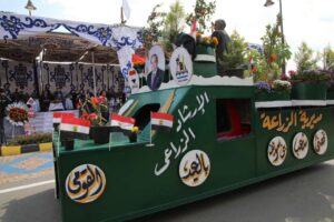 هذا وقد تضمنت الإحتفالية حزمة من الفعاليات والتي شملت استعراض مركبات الوحدات المحلية أثناء مرورها أمام المنصة،حيث تم تزيين السيارات بأشهر المعالم الأثرية والرموز التاريخية والمشروعات القومية التي تميز كل مركز،حيث حملت سيارة مركز ومدينة بني سويف نموذجاً مجسما للطائرة ميج 21 التي شاركت في حرب أكتوبر وتم إهداؤها للمحافظة لتوضع في ميدان العبور بالمدخل الشمالى للمدينة العاصمة ، وسيارة أخرى حملت مجسما لتمثال العبور، الذي قام بنحته الفنان جمال السجيني في عام 1975