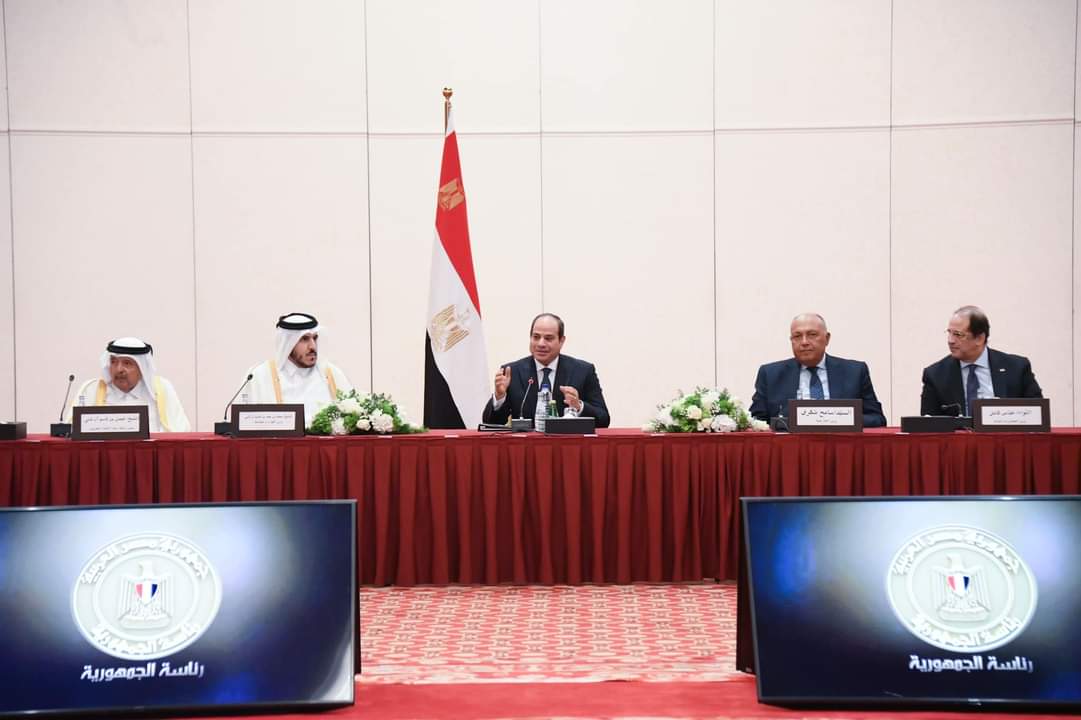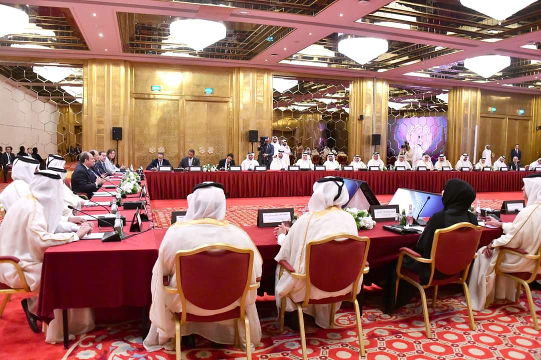 الرئيس السيسي يلتقي ممثلي رابطة رجال الأعمال القطريين بالدوحة بمشاركة الشيح محمد بن حمد والشيخ فيصل بن قاسم
