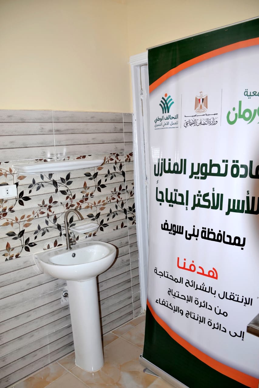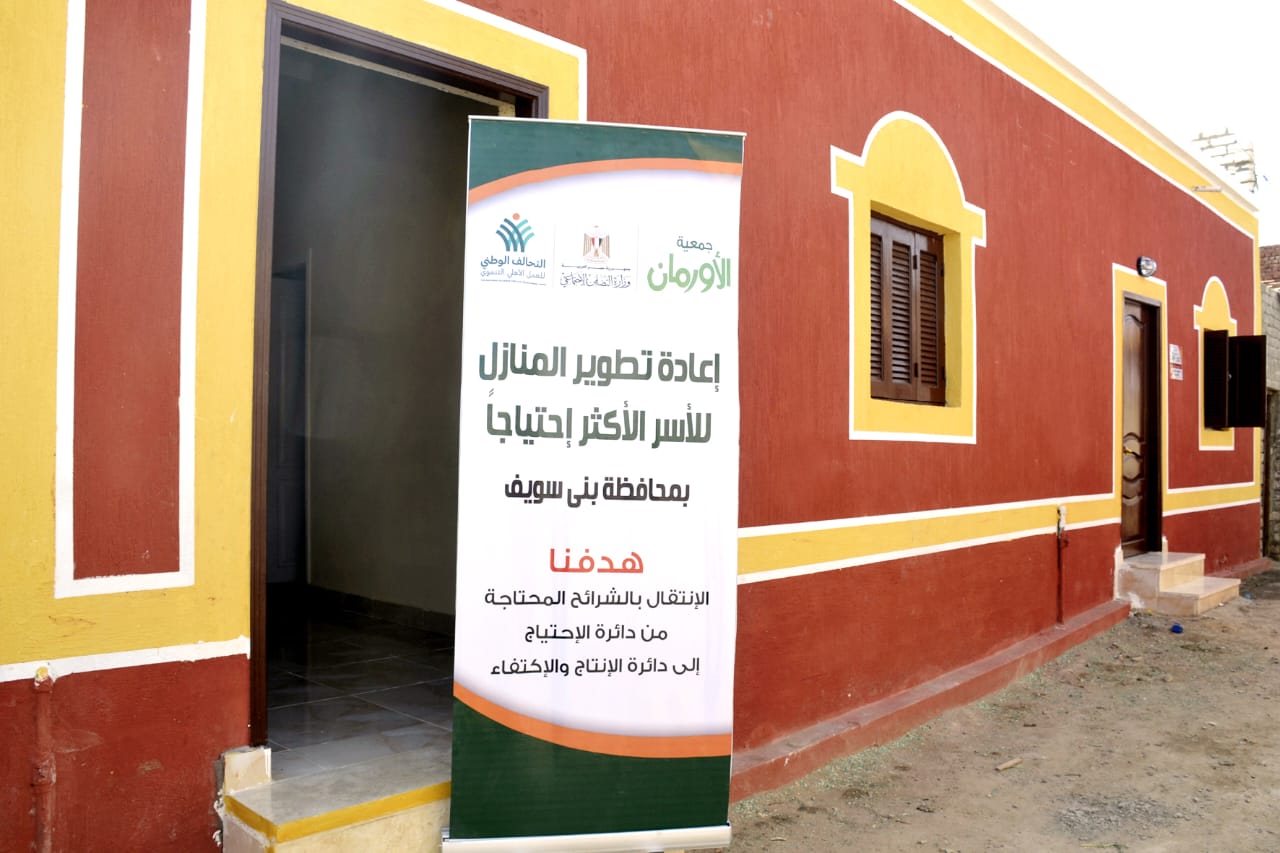 ضمن مبادرة “أكفل قرية فقيرة” اعادة تأهيل (185) منزل ب 4 قرى ضمن القرى الاكثر احتياجًا فى بنى سويف فى اطار جهود التحالف الوطنى للعمل الاهلى التنموي، قامت مديرية التضامن الاجتماعى ببني سويف بالتعاون مع جمعية الأورمان بالانتهاء من اعادة تأهيل واعمار عدد (185)منزل ب 4 قرى ضمن القرى الاكثر احتياجًا بمحافظة بني سويف بتكلفة اجمالية 14 مليون جنيه.