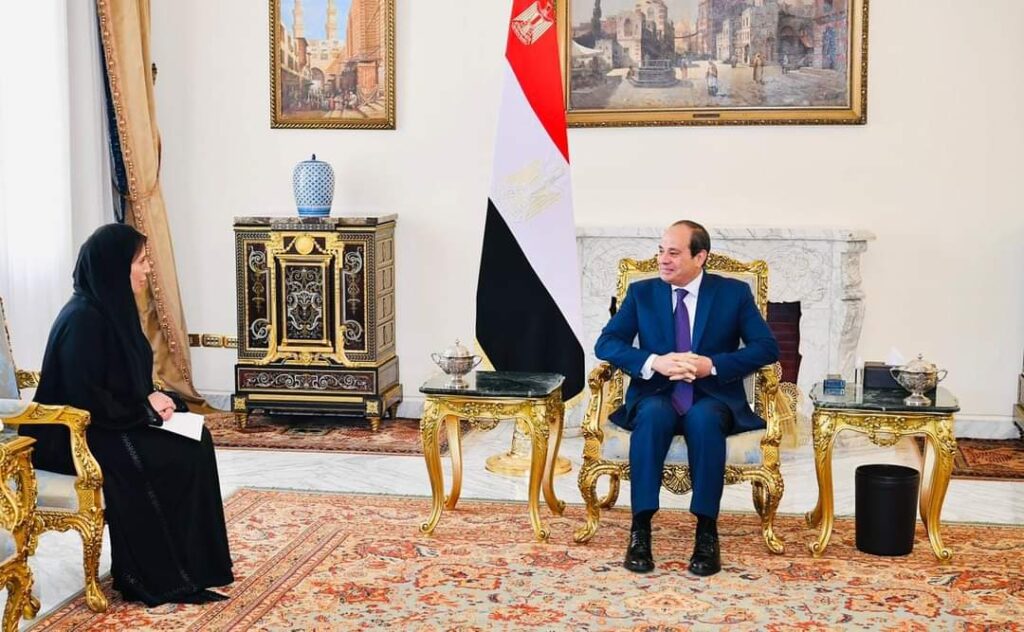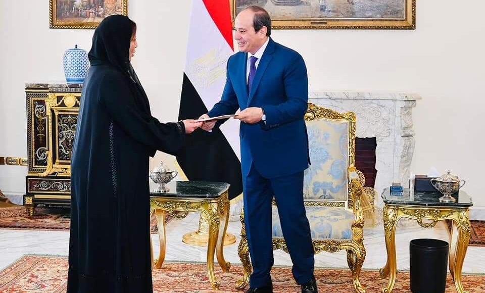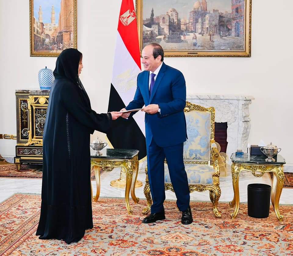 Today, President Abdel Fattah El-Sisi met with the Ambassador of the United Arab Emirates to Egypt, Mariam Al-Kaabi, in the presence of Foreign Minister Sameh Shoukry.