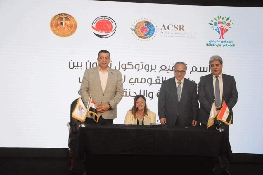 كما تخلل الحفل، توقيع برتوكول المجلس القومي للأشخاص ذوي الإعاقة واللجنة البارالمبية.