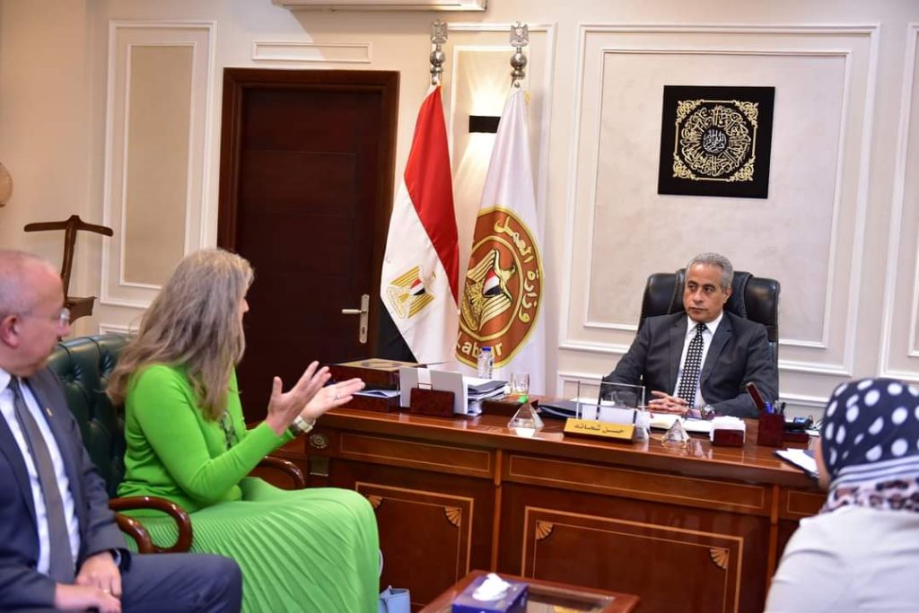هذا وقد شارك في اللقاء :محمد الدروي عضو مجلس “الاتحاد العالمي” ،وعماد نصر رئيس لجنة الموارد البشرية بالغرفة التجارية الأمريكية بمصر،ومن وزارة العمل إيهاب عبد العاطي المستشار القانوني لوزارة العمل، وشيماء محمود رئيس الإدارة المركزية لشئون مكتب الوزير،ورشا عبد الباسط رئيس الإدارة المركزية للعلاقات الدولية وشئون متابعة العمالة الوطنية بالخارج، وأمنية عبد الحميد مساعد فني بمكتب الوزير.