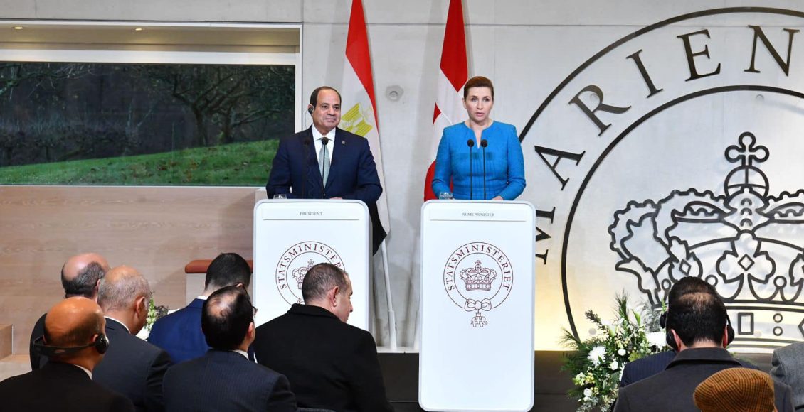التقى الرئيس عبد الفتاح السيسي اليوم في العاصمة الدنماركية “كوبنهاجن” بــــ “ميتا فريدريكسن”، رئيسة وزراء الدنمارك، وذلك في إطار زيارة الدولة التي يقوم بها الرئيس إلى الدنمارك، وقد عقد الجانبان جلسة مباحثات بمشاركة وفدي البلدين، كما قاما بالتوقيع على إعلان الشراكة الاستراتيجية بين مصر والدنمارك، وشهدا التوقيع على مذكرات تفاهم بين البلدين في عدد من المجالات.