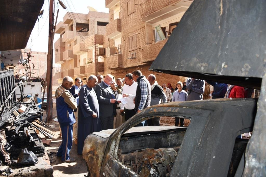 وكلف لجنة المنشآت الآيلة للسقوط بالقيام بمعاينة العمارتين لإعداد تقريرها ، ليعقب ذلك إتخاذ الإجراءات اللازمة بشأنها ، وهو الذى تواكب مع قيام جهات التحقيق المختصة بالمعاينة الميدانية للوقوف على أسباب الحريق ، وأثناء لقاء السكرتير العام المساعد بالأهالى برفقة النائب جابر أبو خليل عضو مجلس النواب ، ونواب رئيس الوحدة المحلية لمركز ومدينة أسوان ، ورئيس حى شرق ، ومسئولى التضامن الإجتماعى .