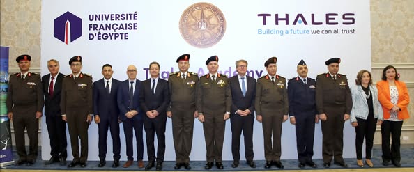 القوات المسلحة تنظم مراسم تسليم شهادات إجتياز البرامج التدريبية الخاصة بمنظومة العمل الفنى فى مجالات الدفاع والصناعة بالتعاون مع شركة تاليس والجامعة الفرنسية بمصر