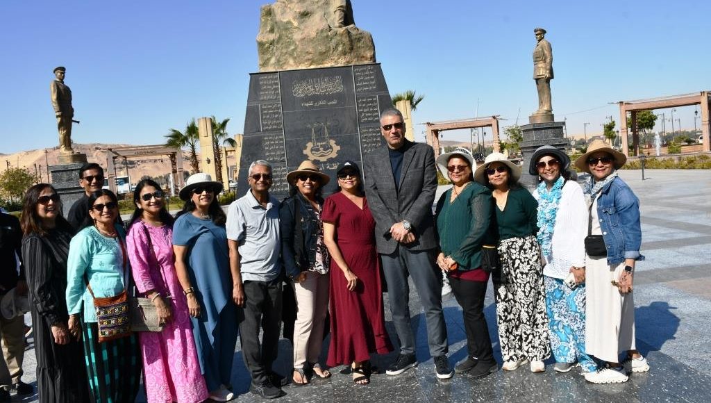 قام اللواء دكتور إسماعيل كمال محافظ أسوان بتوزيع الهدايا الفرعونية على أعضاء فوج سياحى من دولة الهند الصديقة أثناء قيامهم بالتجول بحديقة بلازا درة النيل للإستمتاع بالبانوراما الجمالية والحضارية .