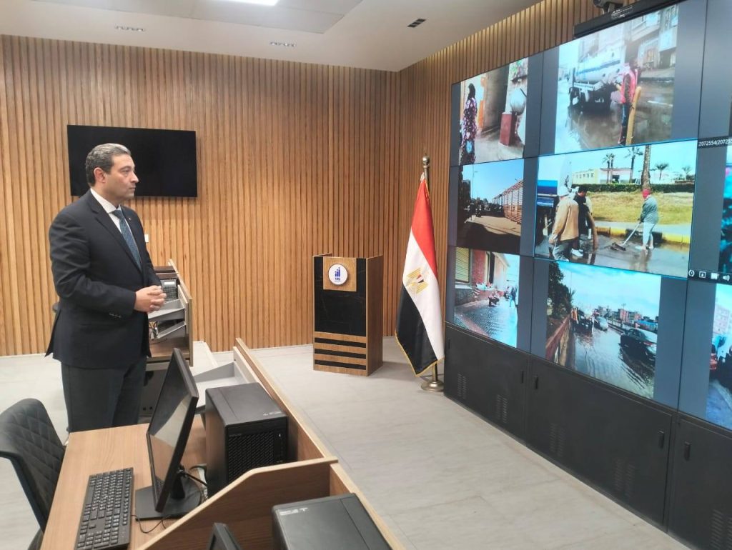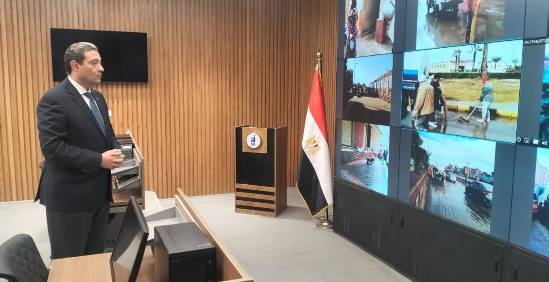 محافظ دمياط يتابع من داخل مركز سيطرة الشبكة الوطنية للطوارئ والسلامة العامة الجهود المبذولة لكسح تجمعات مياه الأمطار معلناً استمرار رفع حالة التأهب لحين تحسن الأحوال الجوية
