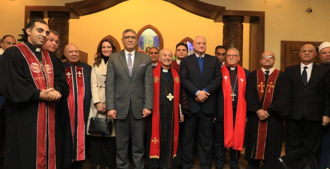 محافظ الجيزة يزور مقر الكنيسة الإنجيلية بالجيزة لتهنئة الأخوة الاقباط بعيد الميلاد المجيد