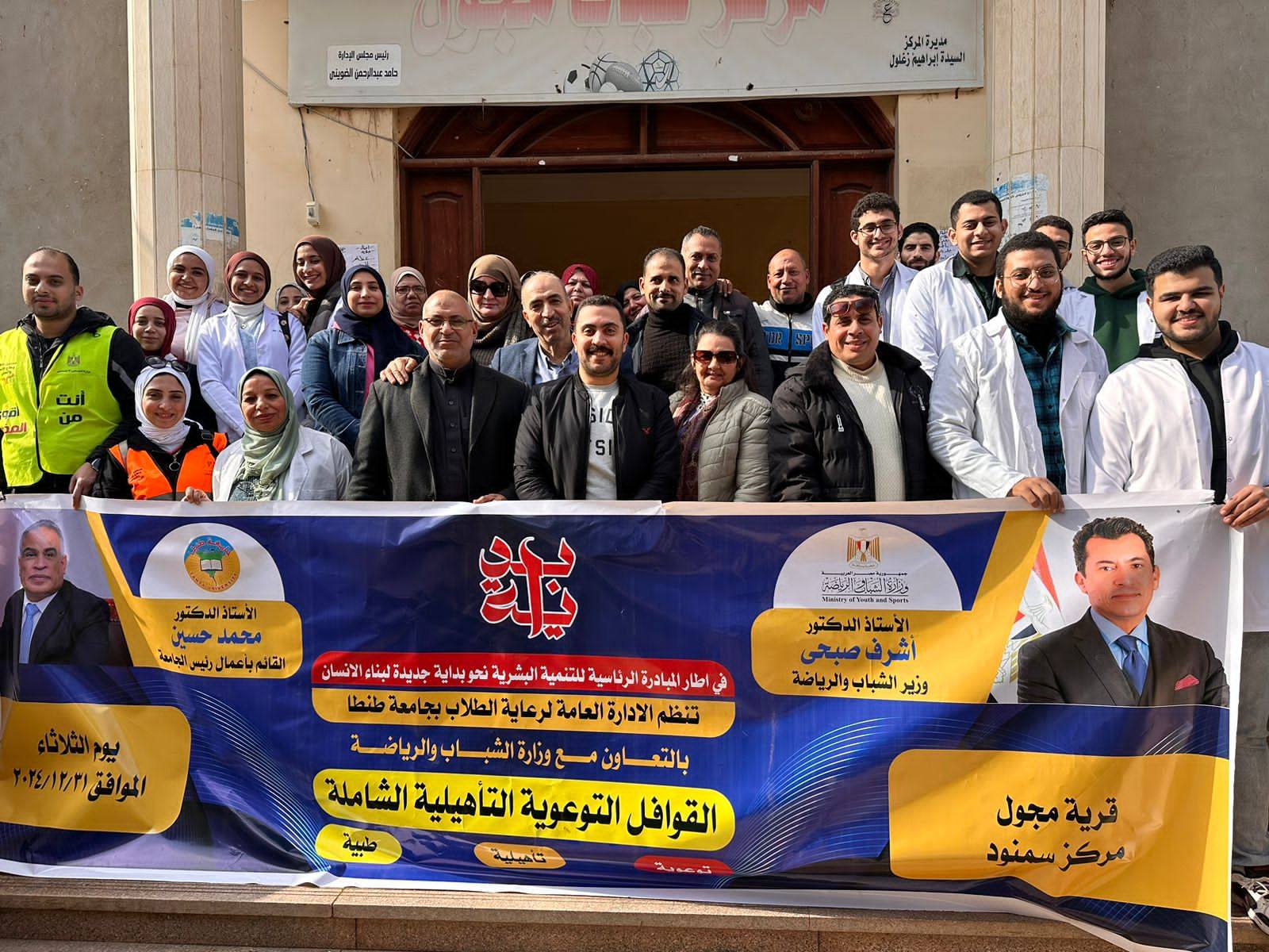 وفي هذا السياق تم تنفيذ القافلة في قرية مجول مركز سمنود بمحافظة الغربية شملت القافلة (توعية صحية – تأهيلية – طب بشري) ،وذلك بالتعاون مع جامعة طنطا، وصندوق مكافحة وعلاج الإدمان والتعاطي.
