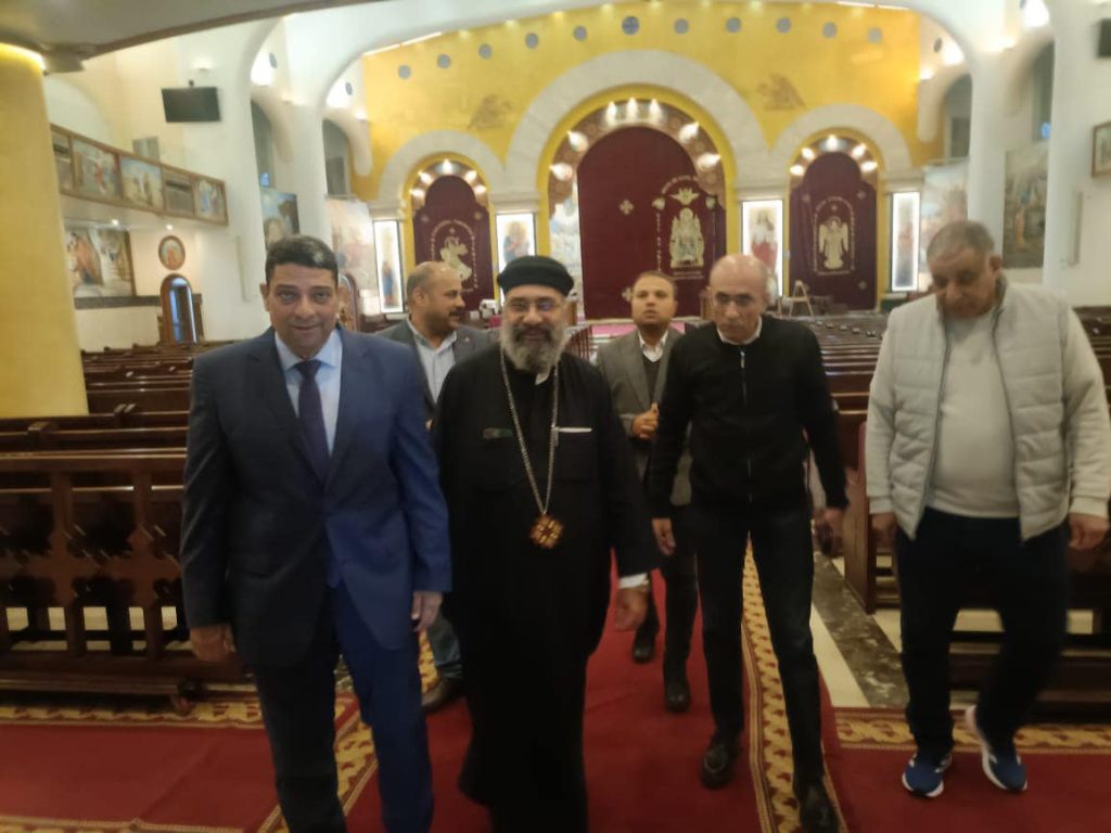 وكان في استقبال رئيس الجهاز والوفد المرافق، القس بطرس بخيت والقس أنطونيوس إبراهيم عياد، والذين أعربوا عن سعادتهم وتقديرهم البالغ بالزيارة وتقديم التهنئة بمناسبة عيد الميلاد المجيد.