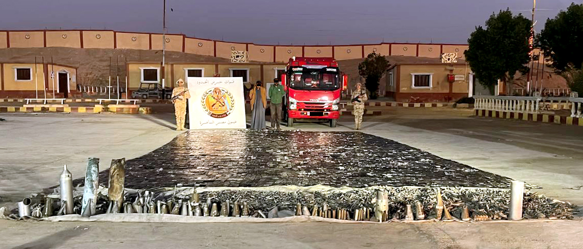 إستمراراً لتنفيذ توجيهات القيادة العامة للقوات المسلحة بتكثيف أعمال تأمين الحدود على كافة الإتجاهات الإستراتيجية للدولة ، نجحت قوات حرس الحدود فى ضبط عدد من المهربين وبحوزتهم كميات من المواد المخدرة ( الحشيش والأفيون والهيدرو ) أثناء محاولة تهريبها لداخل الدولة ، وضبط عدد من العربات المستخدمة فى أعمال التهريب ، وكميات من الأسلحة والذخائر ، وقد تم إحالة المضبوطات إلى جهات الإختصاص لإتخاذ الإجراءات القانونية حيالها .