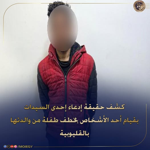 كشف ملابسات تداول مقطع فيديو بمواقع التواصل الإجتماعى يظهر خلاله شخص مقيد وإدعاء إحدى السيدات بقيامه بالشروع فى خطف طفلة من والدتها بالطريق الدائرى بالقليوبية.