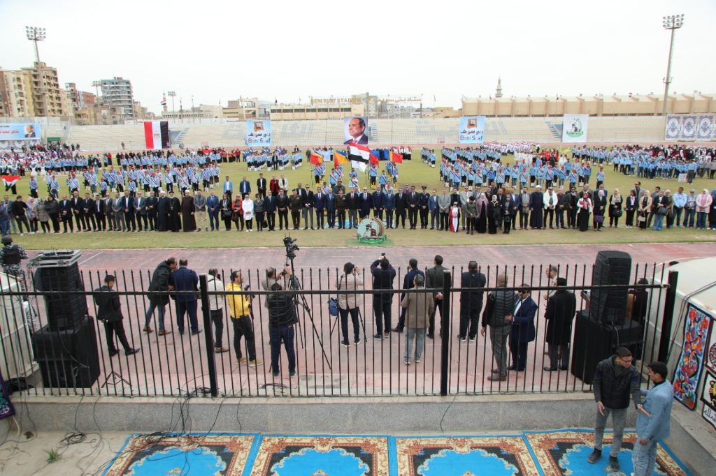 وفي كلمته خلال الاحتفالية، التي أقيمت باستاد “سيتي كلوب”، نقل المحافظ، باسم أبناء بني سويف، أسمى آيات الشكر والتقدير لفخامة الرئيس عبد الفتاح السيسي، قائد مسيرة التنمية غير المسبوقة في صعيد مصر، مشيراً إلى الطفرة النوعية التي شهدتها المحافظة خلال السنوات العشر الماضية، من خلال تنفيذ مشروعات قومية وتنموية وخدمية تجاوزت تكلفتها 150 مليار جنيه، وشملت مختلف القطاعات، في تأكيد لحرص القيادة السياسية على تحقيق التنمية المتوازنة والعادلة في جميع أنحاء الوطن.