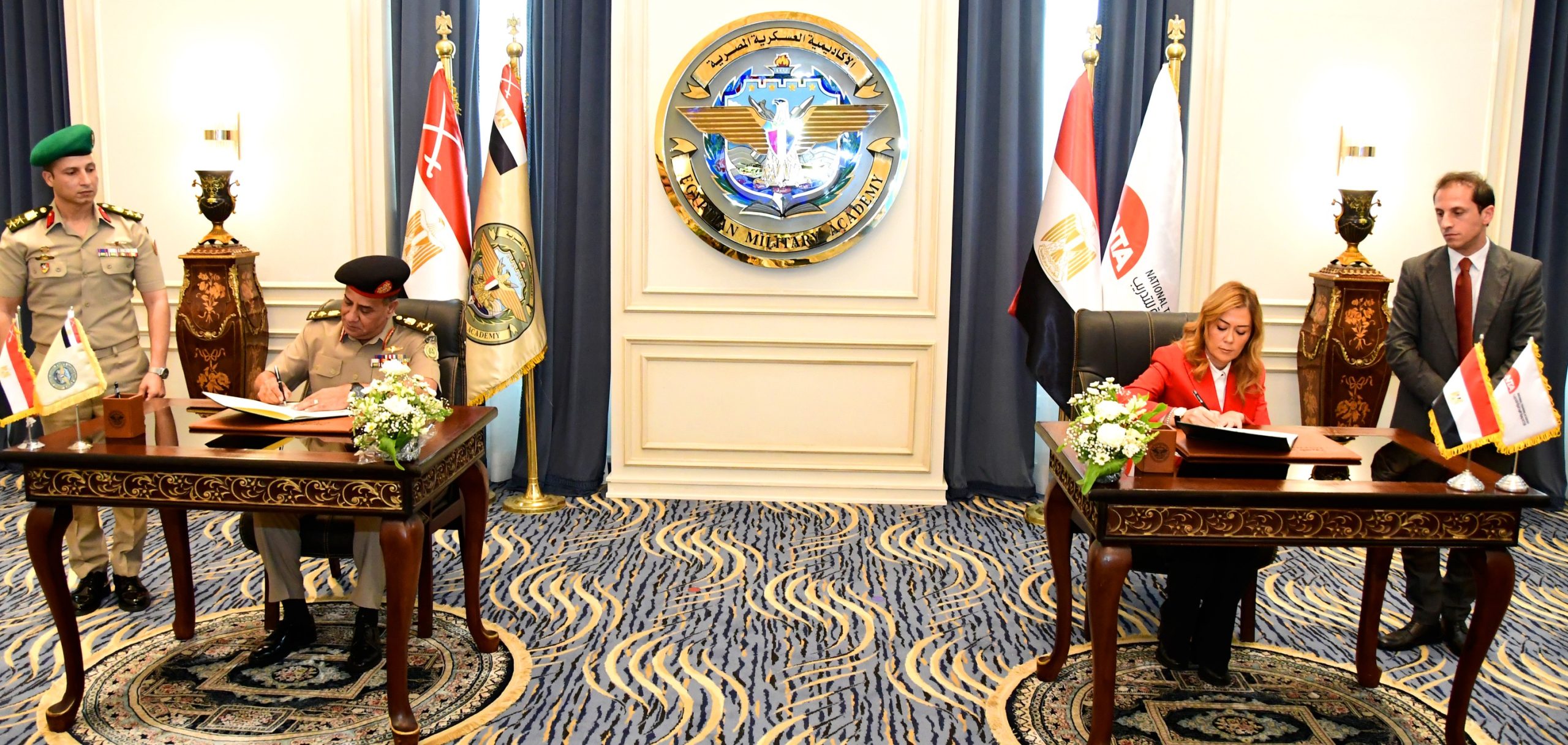 فى إطار حرص القوات المسلحة على دعم وتوثيق الروابط العلمية والثقافية وتبادل الخبرات مع مختلف الأكاديميات والهيئات التدريبية المتخصصة بالدولة ، وقع الفريق / أشرف سالم زاهر مدير الأكاديمية العسكرية المصرية بروتوكول تعاون مع الدكتورة / رشا راغب المدير التنفيذى للأكاديمية الوطنية لتدريب وتأهيل الشباب .