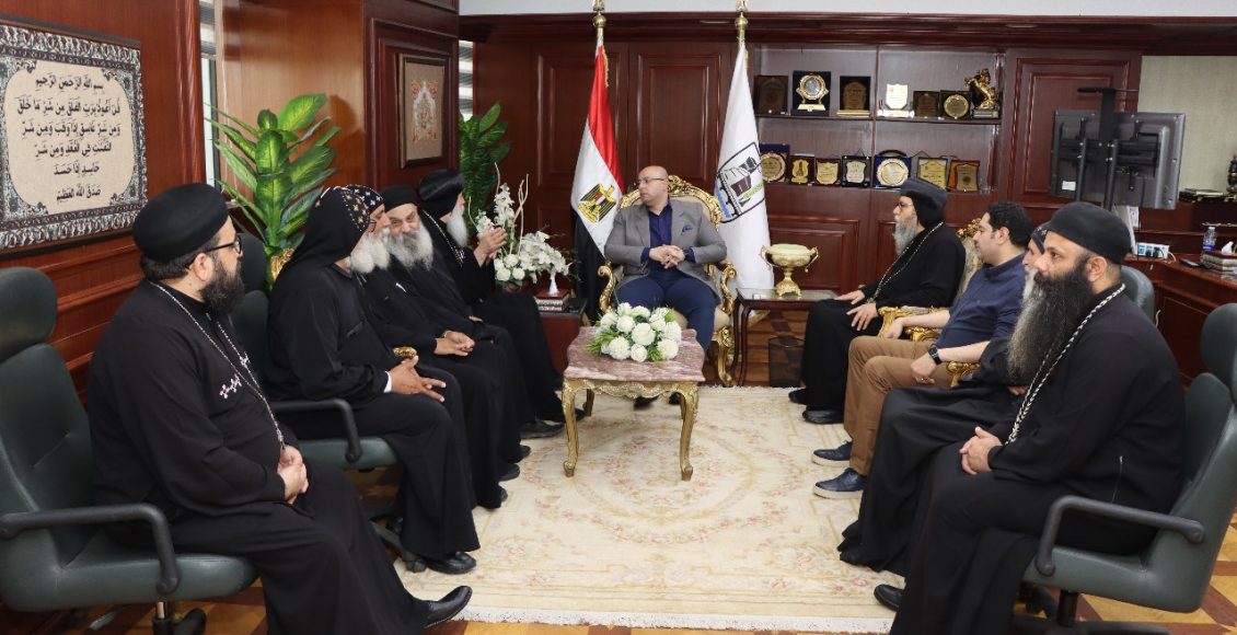 محافظ بني سويف يتلقى التهاني بعيد الأضحى المبارك من قيادات الكنائس والطوائف المسيحية
