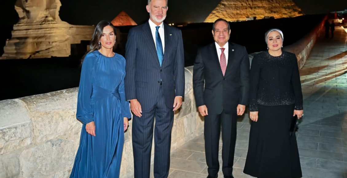 أضاف المتحدث الرسمي أن الرئيس والسيدة قرينته اصطحبا ملك وملكة إسبانيا، عقب مأدبة العشاء، في جولة بمنطقة أهرامات الجيزة وأبو الهول، حيث التُقطت صور تذكارية توثّق هذه اللحظة، كما استمع الضيفان، برفقة الرئيس وقرينته، إلى شرح موجز حول تاريخ أبو الهول وما يرمز إليه من إرث حضاري خالد.