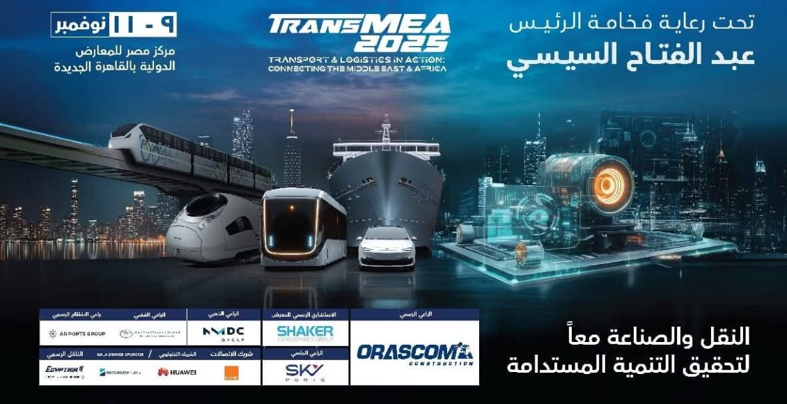 النقل : غدًا انطلاق الدورة السادسة من معرض ومؤتمر النقل الذكي واللوجستيات والصناعة TransMEA خلال الفترة من 9-11 نوفمبر 2025 تحت رعاية فخامة الرئيس عبدالفتاح السيسي رئيس الجمهورية وبمشاركة أكثر من 500 شركة من 30 دولة.