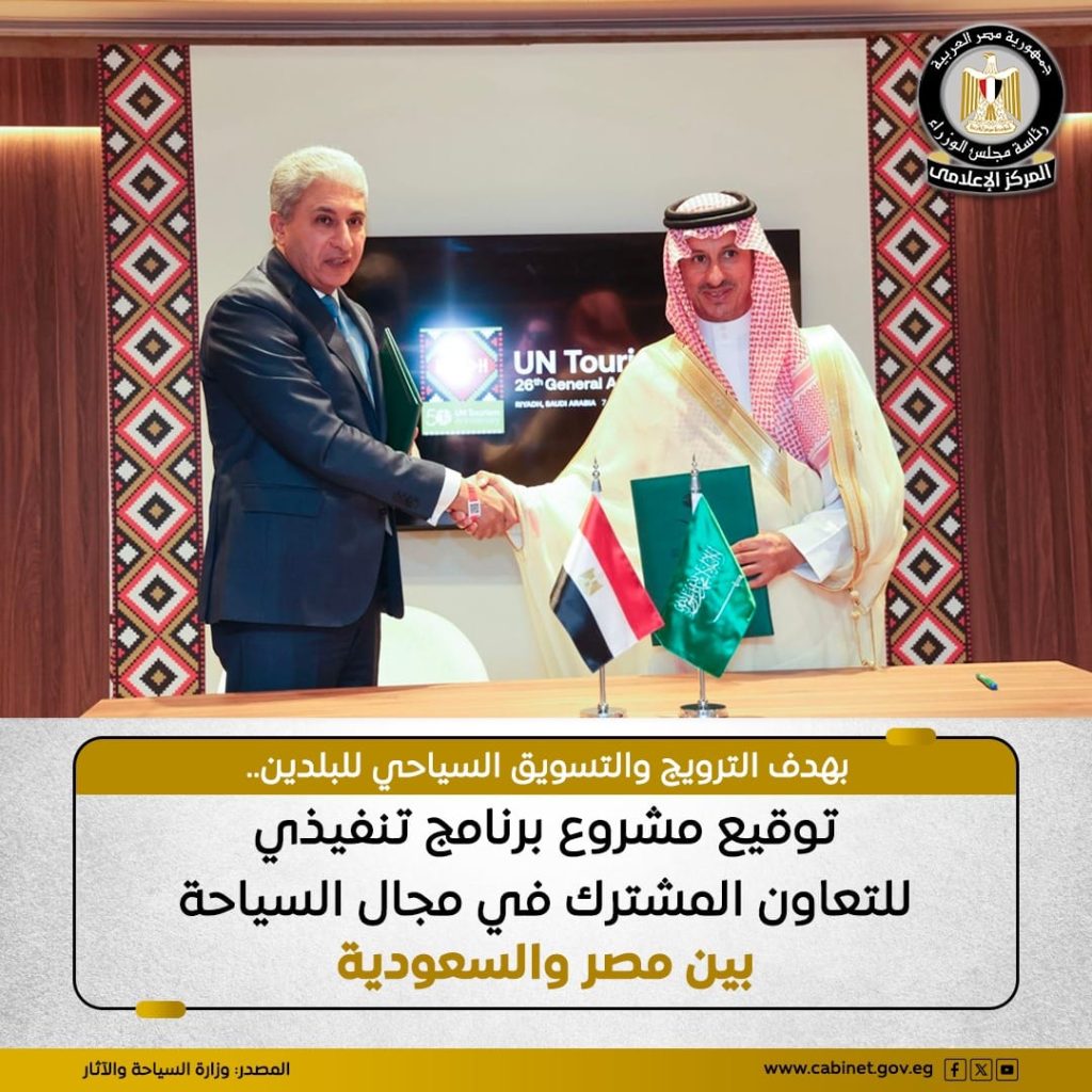 تم توقيع مشروع البرنامج التنفيذي بين وزارة السياحة والآثار المصرية ووزارة السياحة السعودية.