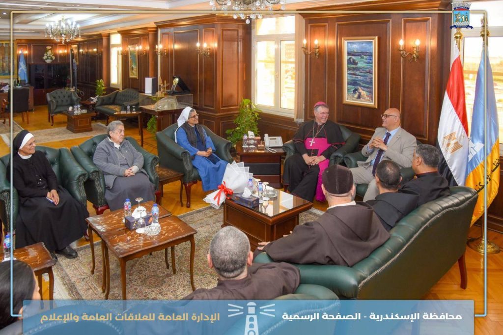 الإسكندرية : محافظ الاسكندرية استقبل اليوم بمكتبه المطران كلاوديو لوراتي – مطران اللاتين في مصر لتقديم التهنئة بمناسبة توليه مهام منصبه محافظًا للإسكندرية